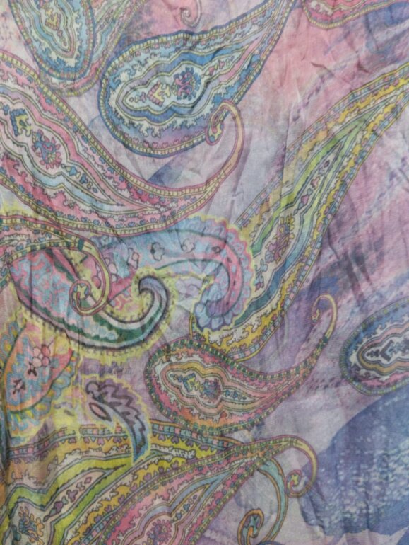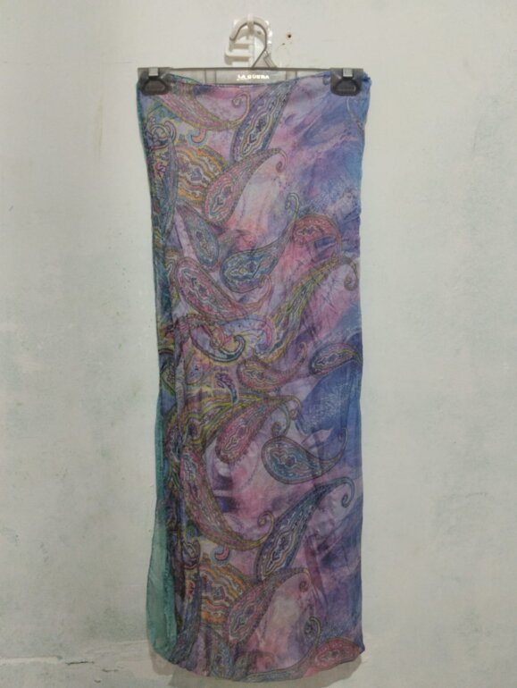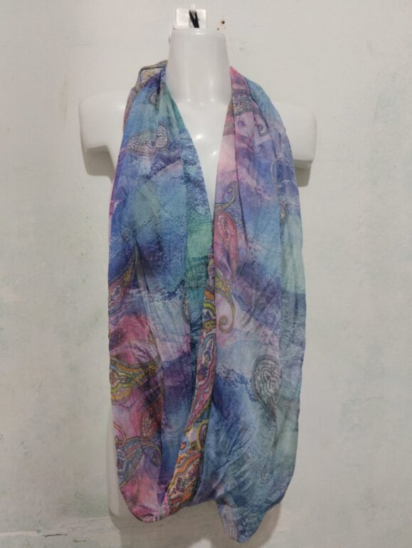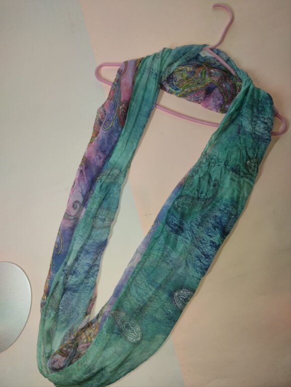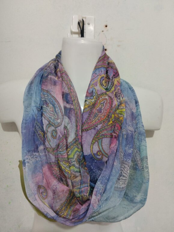 Linda pashmina redondeada,es cerrada colorida, tela ligera en buen estado.