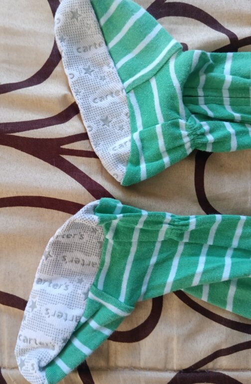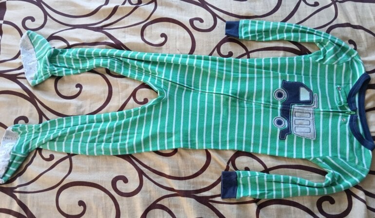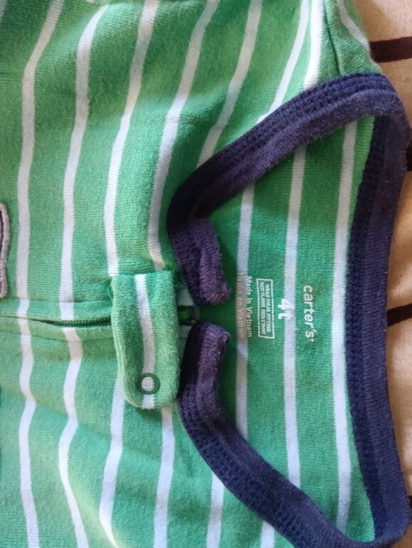Color verde con rayas blancas, usada sin detalle, súper cómoda para los niños