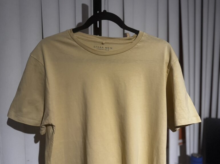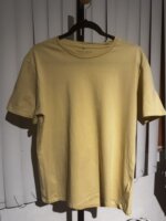 Manga corta, corte regular, talla L, color amarillo.