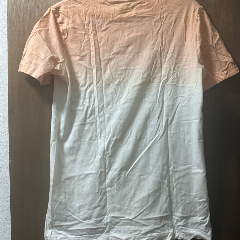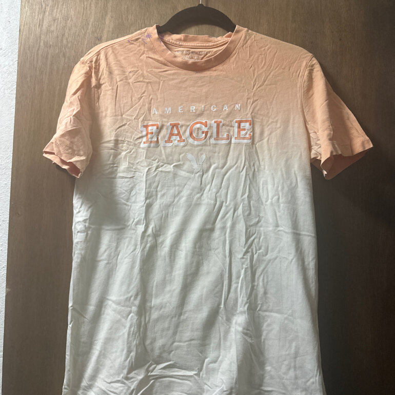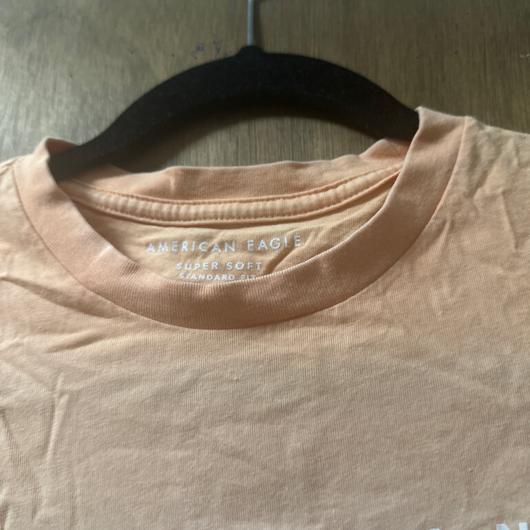 Playera American Eagle, color naranja con blanco, talla xs, detalle en el cuello
