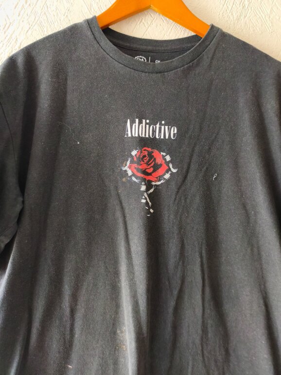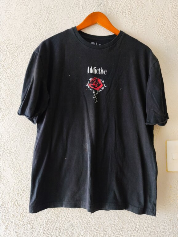 Playera negra con estética grunge punk con gráfico de rosa roja