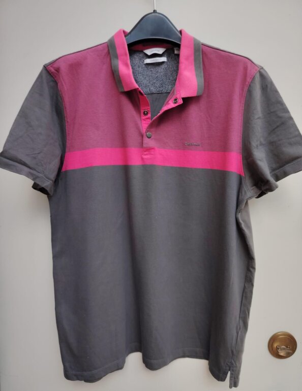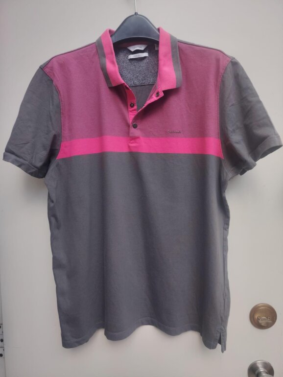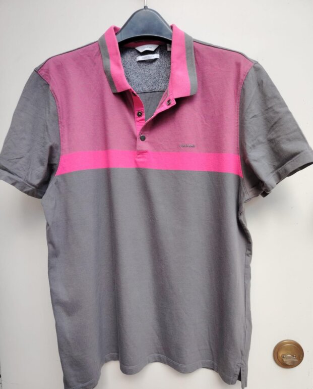 Hermosa playera tipo polo gris y rosa marca Calvin Klein en buenas condiciones. Axila. 57 CM Hombro 42 CM