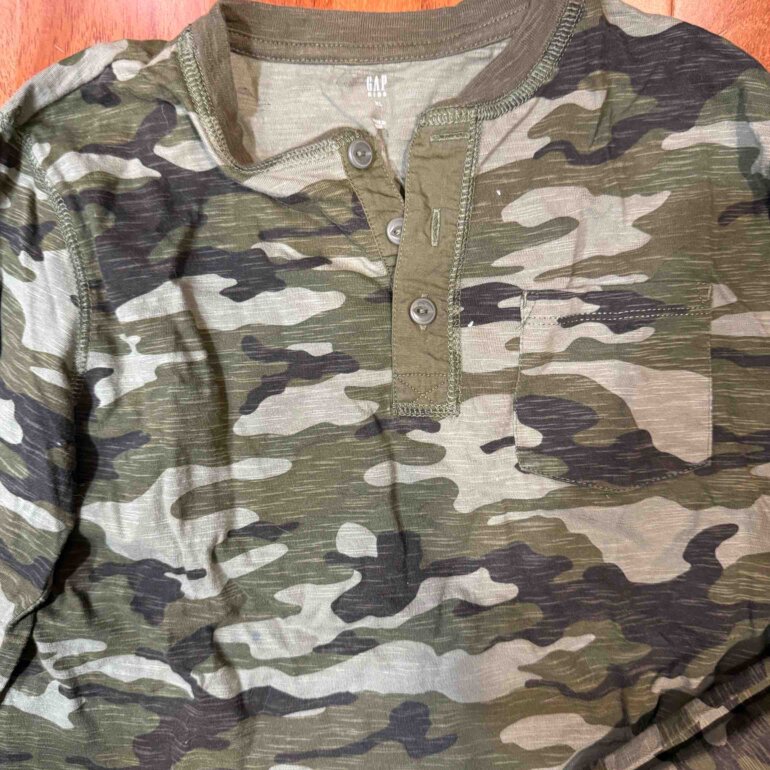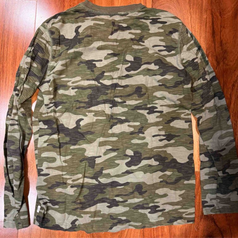 Playera marca GAP, de manga larga, camuflajeado verde, talla 15, en perfectas condiciones.