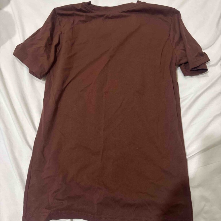 Playera talla 14-16 niño cuello redondo, axila a axila 41cm, largo 62cm, color café oscuro