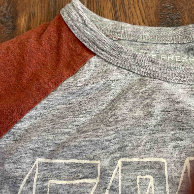 Marca Joe Fresh - Talla 8, color café/gris - Largo 55 cm, hombro-hombro 37 cm, axila-axila 41 cm