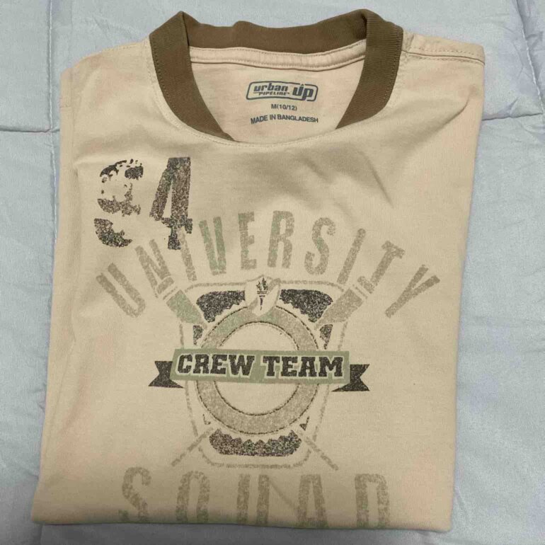 Playera cómoda y versátil de niño color beige con café claro 1 puesta