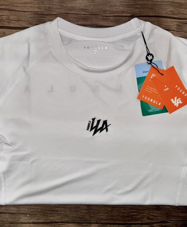 ✅Speed Compression Tees -YoungLA-, .tela poliéster y elastano, manga corta y hecha de un material antibacterial que repele rápidamente el sudor, manteniéndote fresco. Logo en relieve de la marca y detalles en plateado. Tallas disponibles: Mediana (M) y Grande (L). Artículo Nuevo, 100% original e importado desde USA.