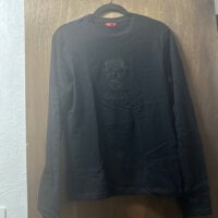 Playera Guess, manda larga, color negro con estampado de calavera, tamaño xs