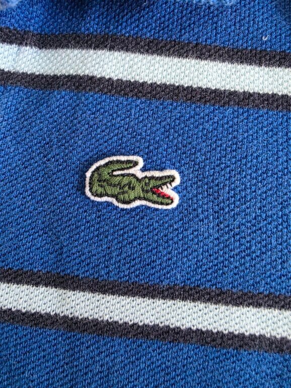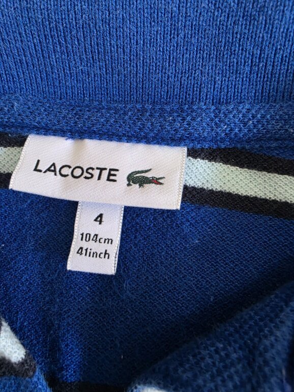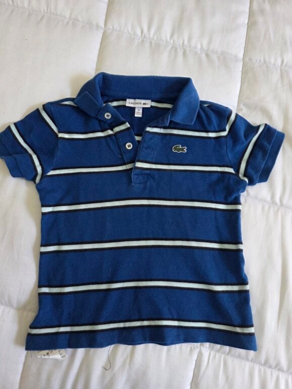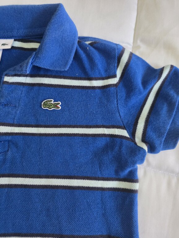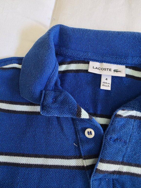Playera tipo polo marca Lacoste a rayas. Original. Sin detalles.