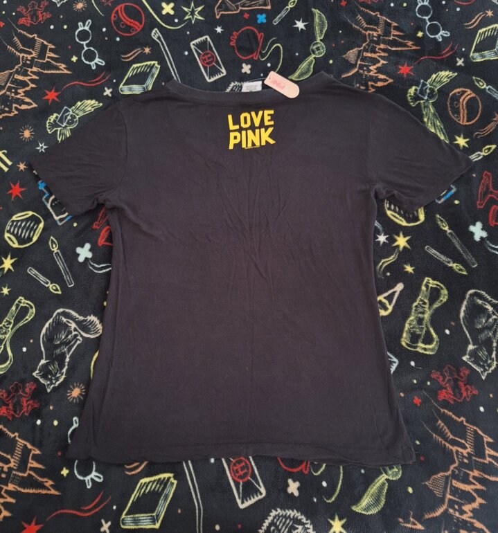 Playera negra de manga corta y cuello en v, con estampado de piratas. Es talla M de la marca PINK by VICTORIA'S SECRET, a estrenar con etiqueta 🏷 ✨️.