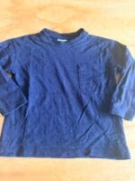 Playera negra de manga larga para niño, cuello redondo y con bolsita en la parte de enfrente, básica.