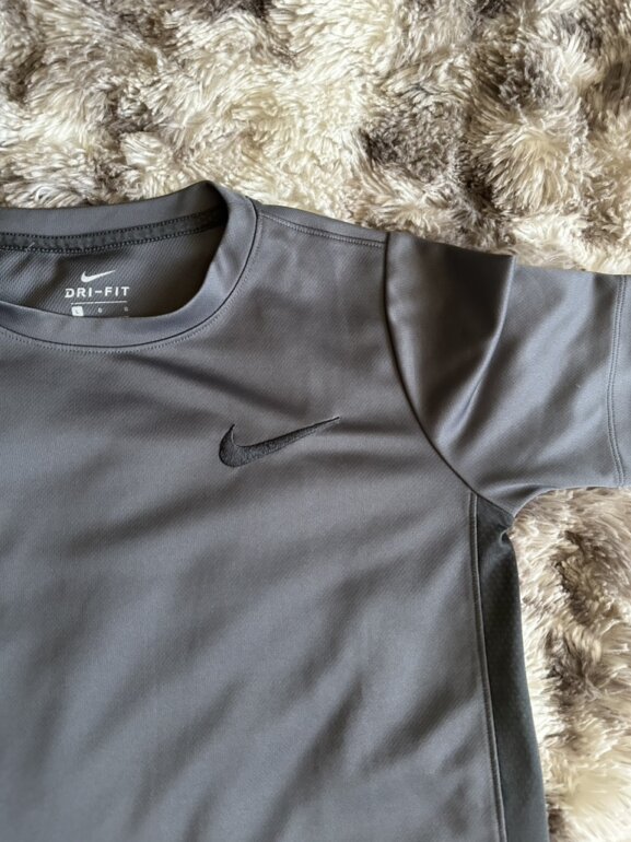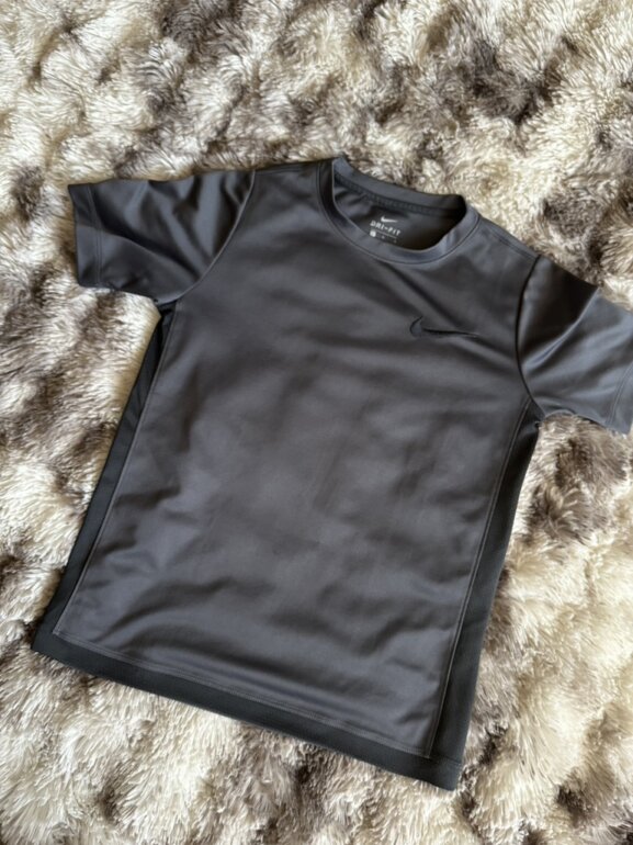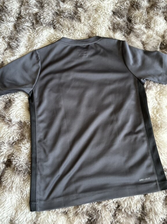 Playera gris Nike deportiva color gris obscuro, dri-fit para niño, TALLA G