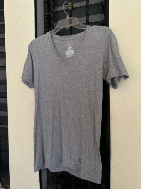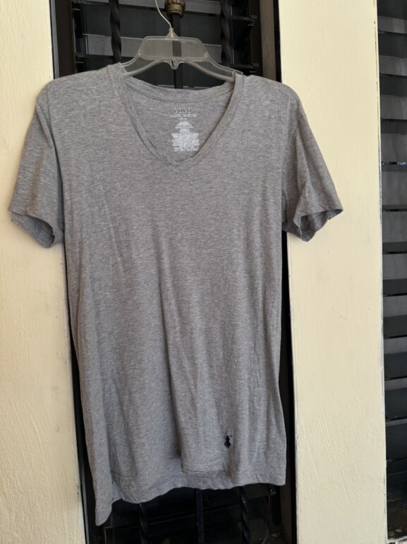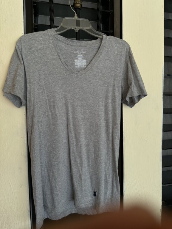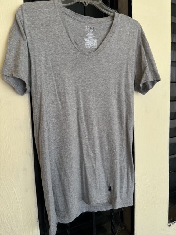 Camisa de la marca polo Ralph Lauren con cuello en V original en color gris y con logo en la parte baja, está en perfecto estado es talla S (chica)