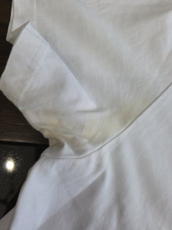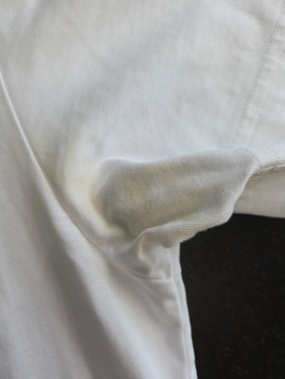 En la parte de las axilas esta un poco manchada pero al lavarla con desmanchador se le quita