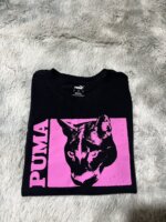 Playera negra con estampado de pantera en la parte forntal manga corta