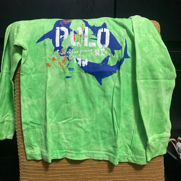 Playera Polo Ralph Lauren manga larga , de algodón color verde limón jaspeado, talla 4 muy cómoda y original
