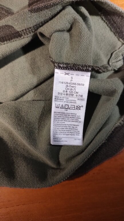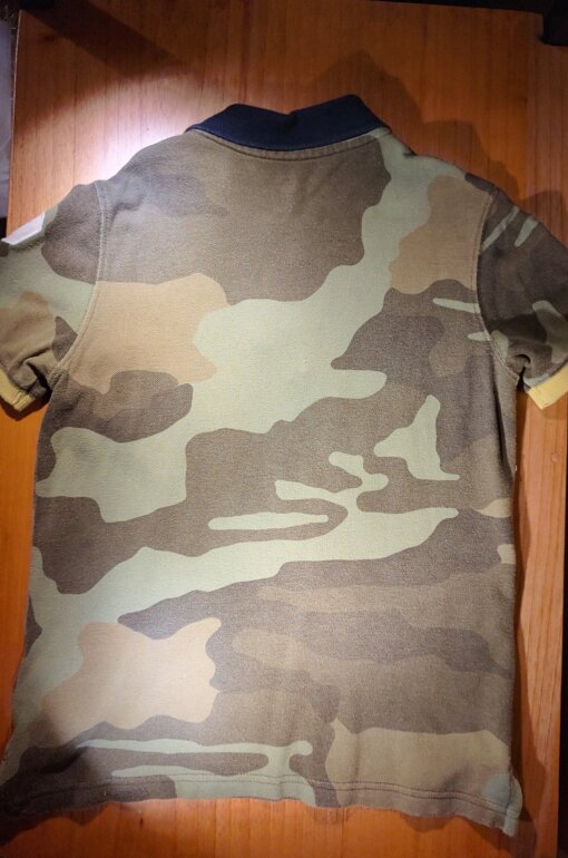 Playe tipo polo marca Gap diseño camuflaje con cuello azul y número en manga.