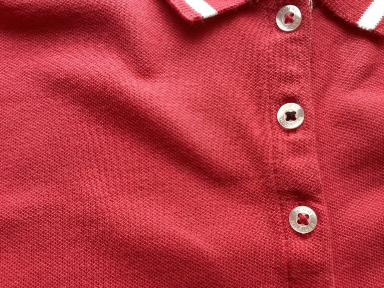 Color rosa-rojo, manga corta, tipo Polo, botones al frente