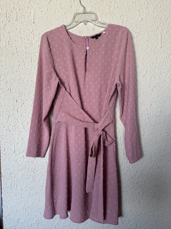 Vestido palo de rosa, en altura promedio queda un poco arriba de la rodilla tela delgada con diseño bonita caída , tiene forro , sin ningún detalle es nueva