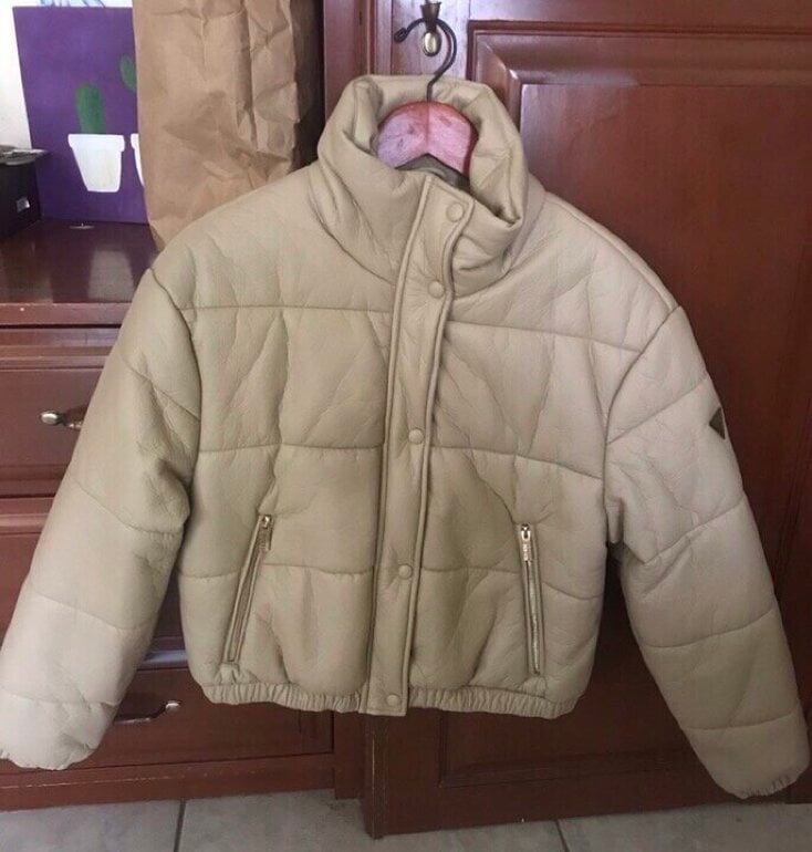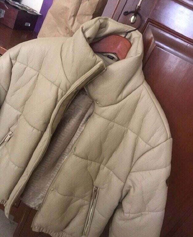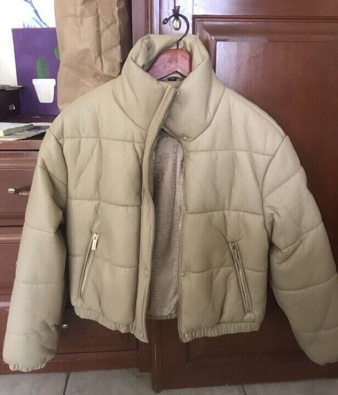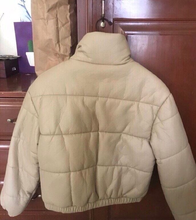 Puffer jacket de piel. En color beige.