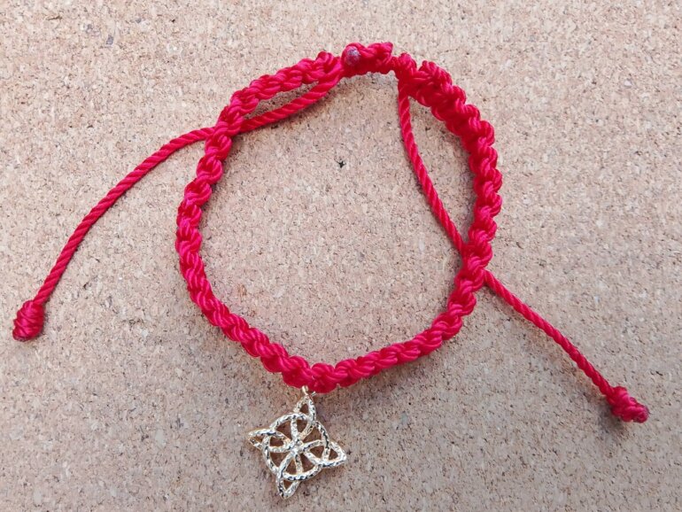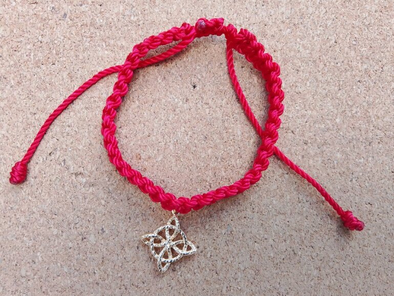 Pulsera roja dije nudo de bruja chapa de oro nueva