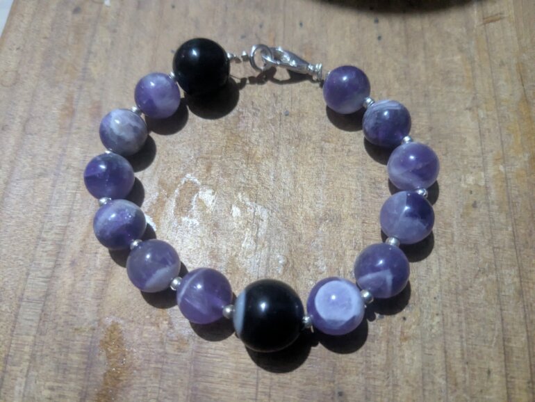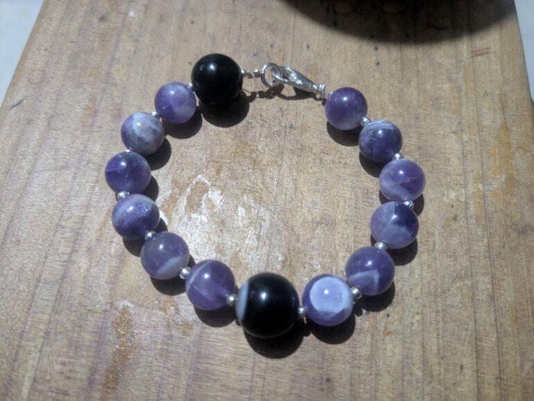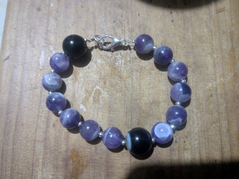 Pulseras de energía protectora, amatista, cuarzo trasparente y turmalina negra 15cm ..las 4 pulseras a 269 hechas por la diseñadora Fabiola Montoya.