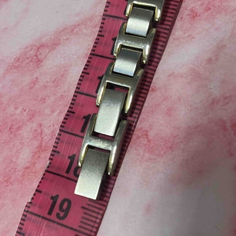 Tiene un eslabón extra, en la foto del las medidas se puede ver qué ya va puesto, se puede quitar con facilidad ☺️