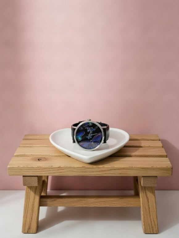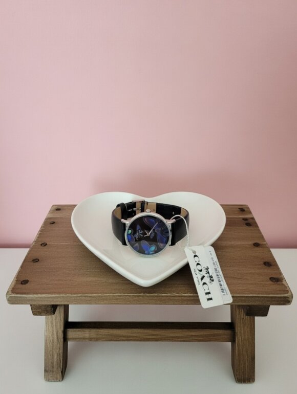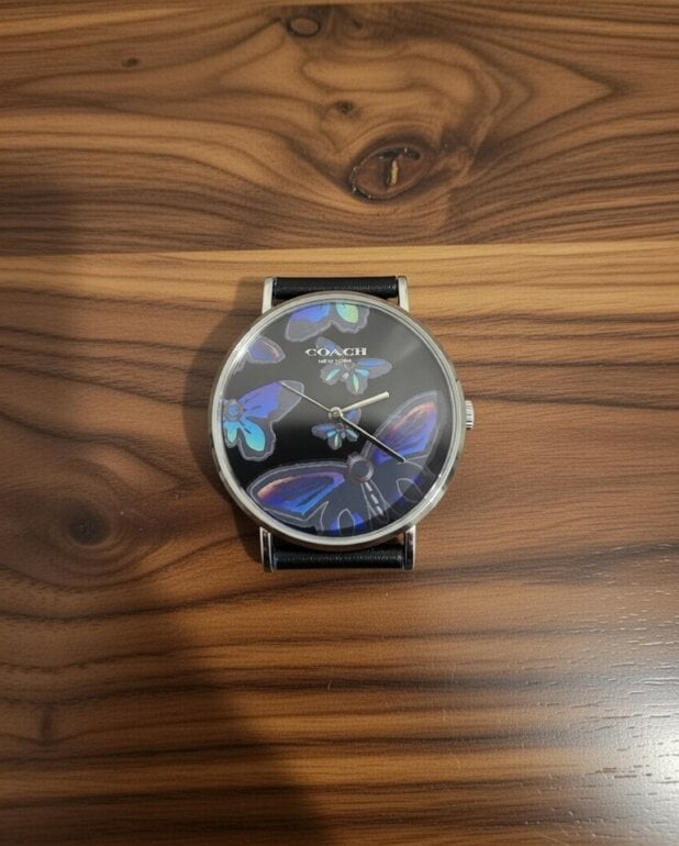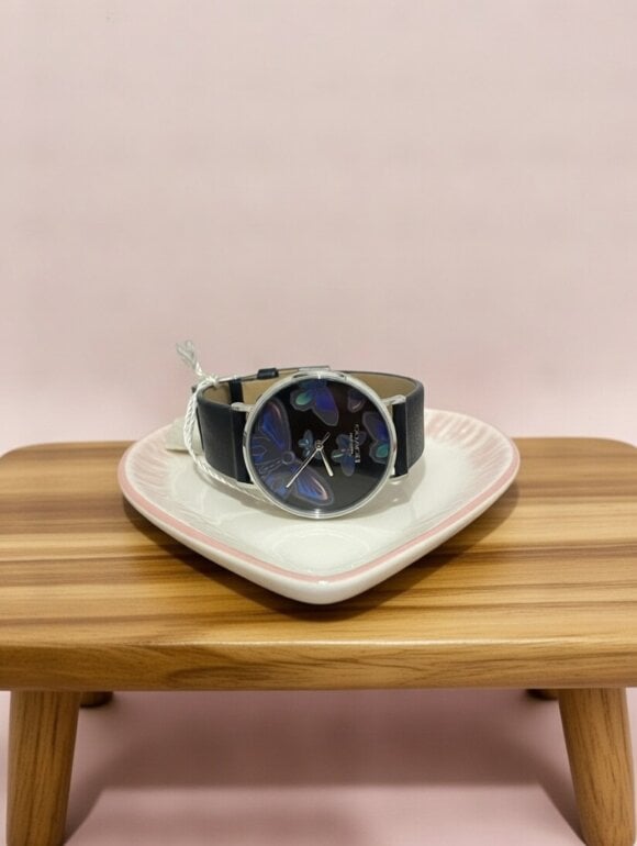 Reloj coach nuevo con mariposas azul eléctrico y contorno azul eléctrico . Hermoso