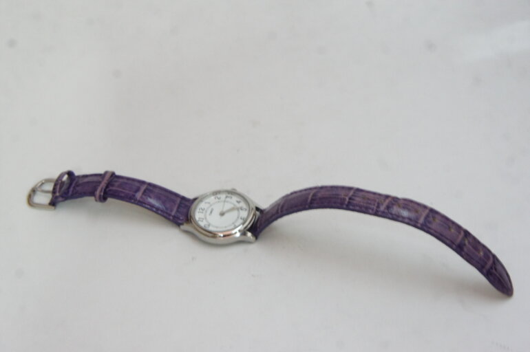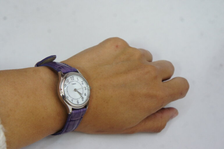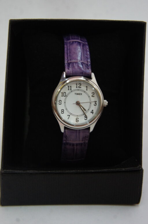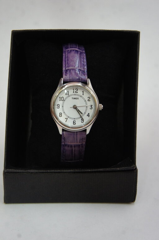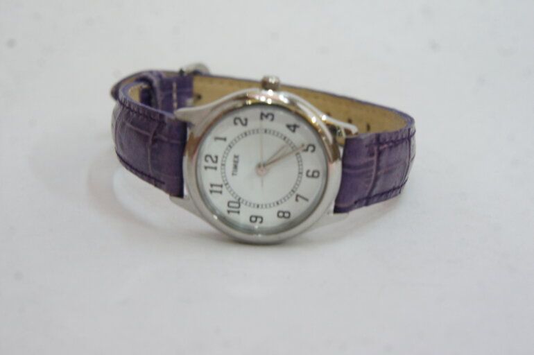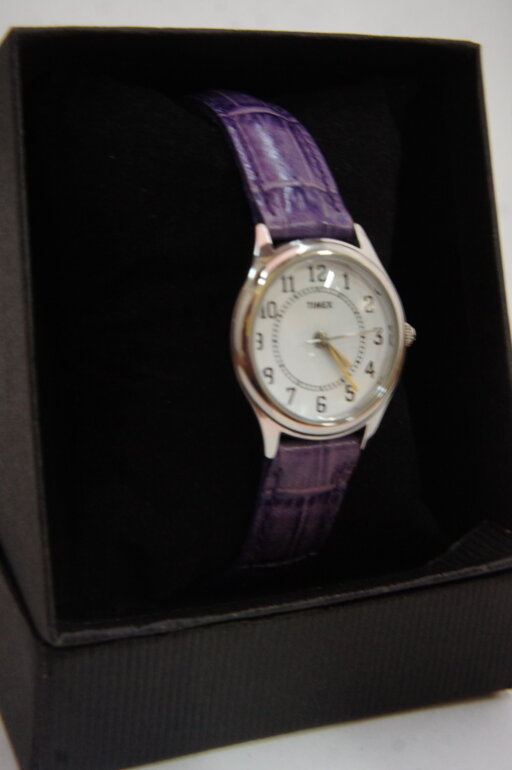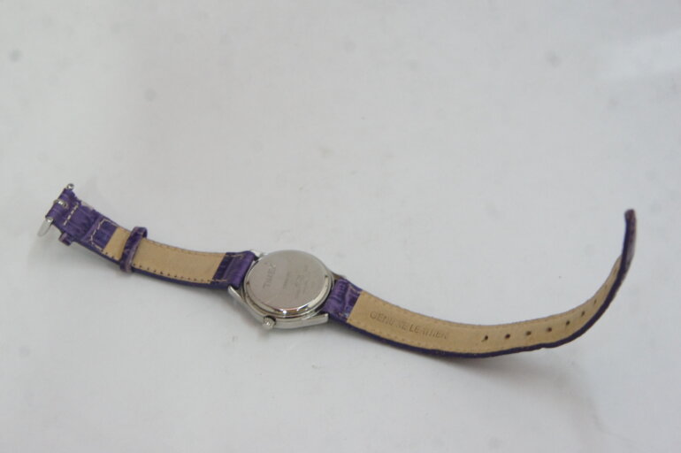 Reloj Timex de dama cuarzo, correas moradas.