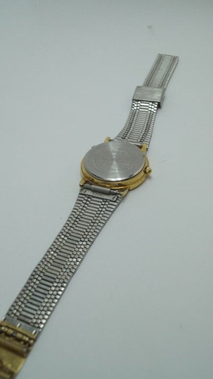 Este reloj cuenta con un movimiento de cuarzo, lo que garantiza precisión en la medición del tiempo. La pantalla análoga ofrece una lectura clara y sencilla, perfecta para quienes aprecian la estética clásica. Aunque no es resistente al agua ni apto para buceo, su estilo sofisticado lo hace destacar en cualquier colección.