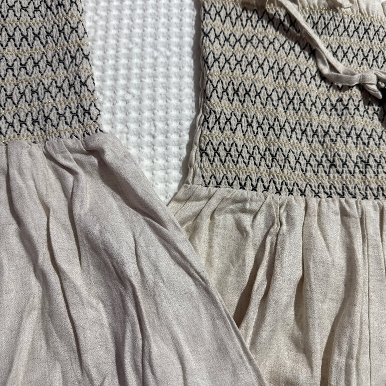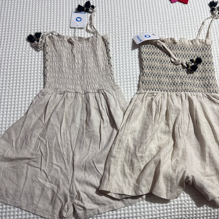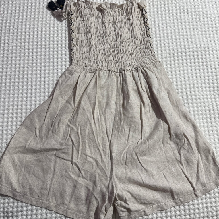 ROMPER MAYORAL 10 años niña, tela preciosa, algodón suave. Romper/short veraniego algodón tipo lino beige, dos piezas...precio 230 más comisión de go trendier... pueden ESCRIBIRME a las medidas 55 cintura 34 largo 55 ancho 29 espalda 78 c3L