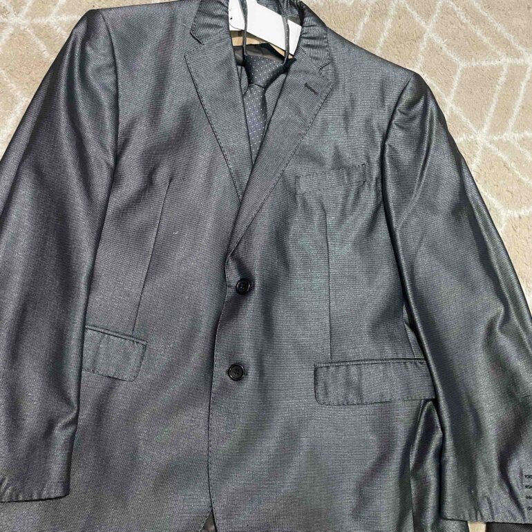 Traje con corbata puesto una vez en color gris , bolsas en la parte de adentro del saco y la parte de enfrente