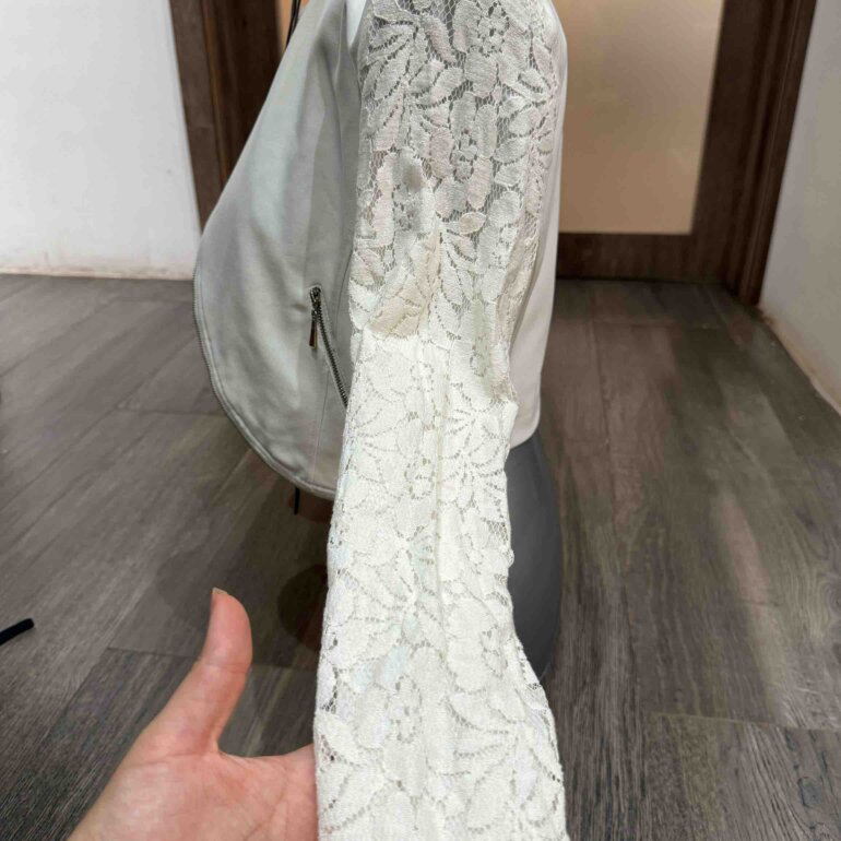 Mangas y cuello con encaje blanco