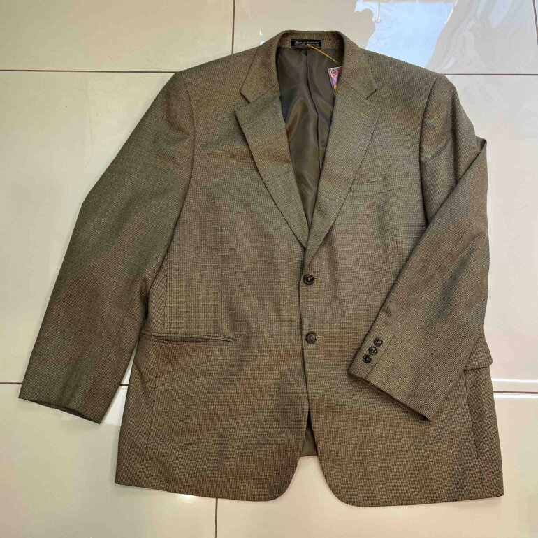 Saco de hombre color arena, corte recto, tela de buena calidad.