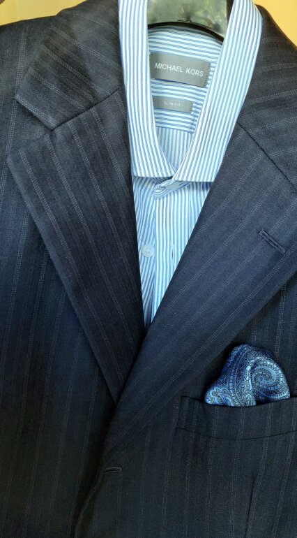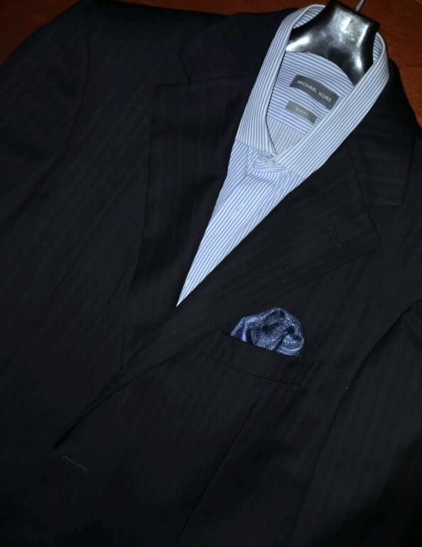 Excelente saco Ermenegildo Zegna original 40S (o Corto) hecho en Italia de lana 100% con corte a 3 botones. El saco viene en color azul marino con rayas, las cuales le dan mucha presencia.