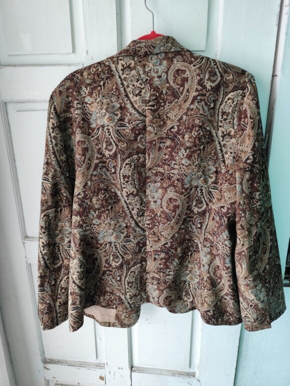 Increíble saco con print de temática paysley con bolsillos simulados y corte favorecedor, talla 1xl