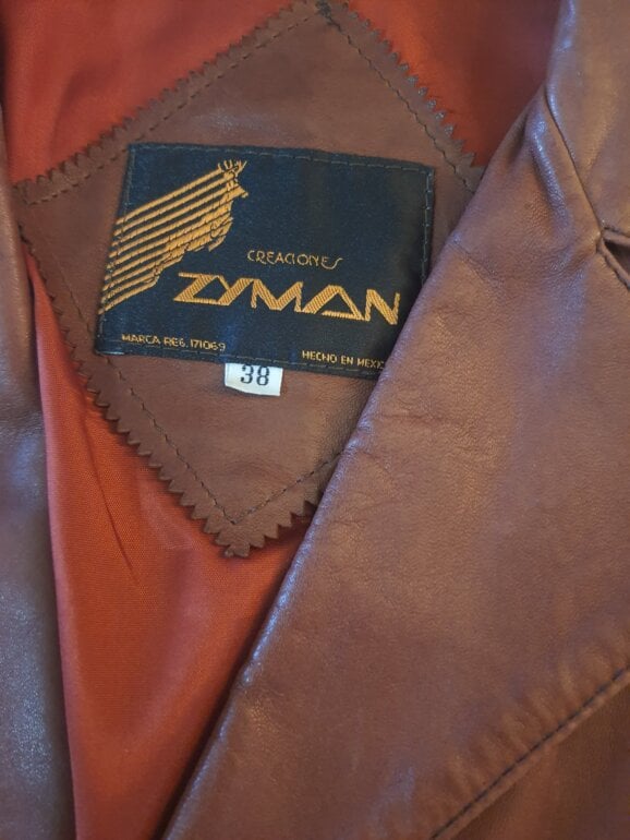 Saco estilo vaquero, en finísima piel, de la prestigiada marca Zyman, usado en perfectas condiciones, talla 38 color café