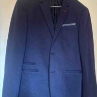 Padrísimo traje azul, con detalle en la solapa que hace lucir mucho, es juvenil, en excelente estado, no tienen ningún detalle es muy casual y combinable