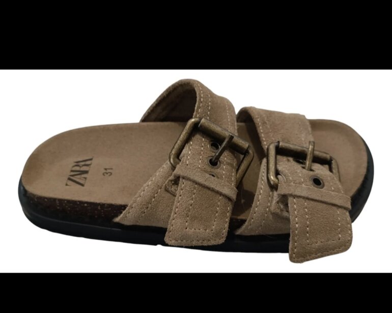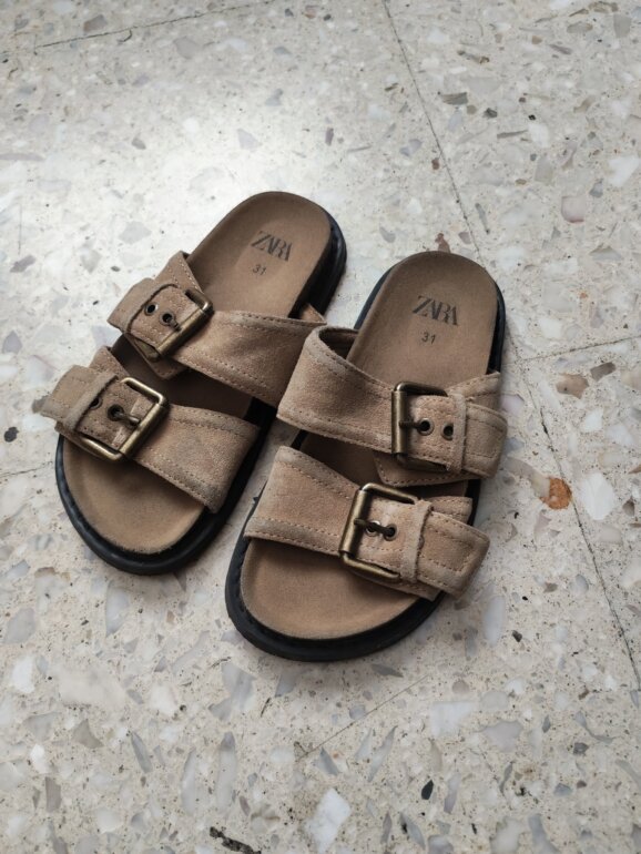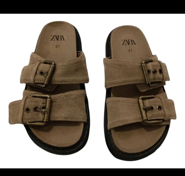 Huaraches con hebillas, color beige, de gamuza, talla 31 europeo, Marca Zara.