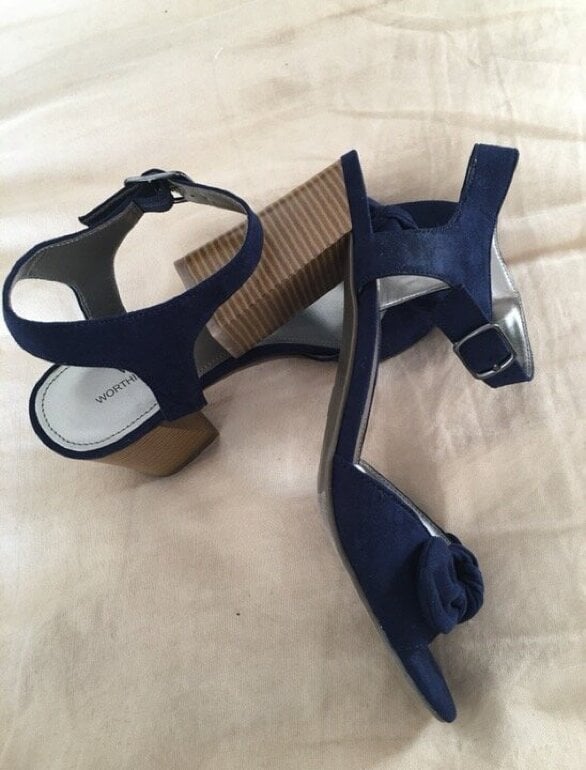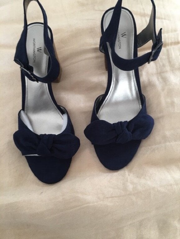 Hermosas sandalias de tacon cuadrado color azul con detalle de moño. Poco uso Matca worthingto. En perfectas condiciones