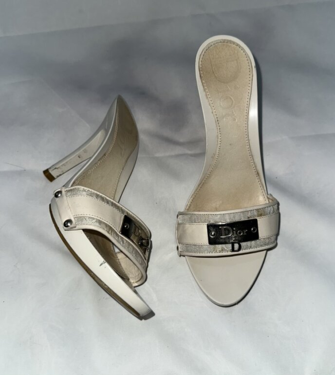 Sandalias de tacon Christian Dior originales, de uso, están poco sucias como se aprecia en las imágenes, son talla 36.5.