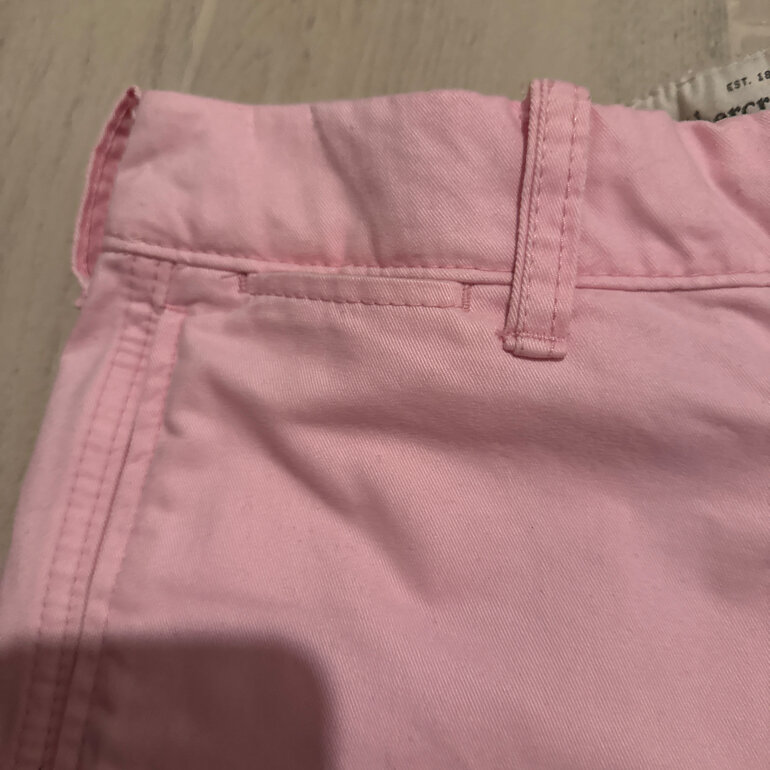Short de gabardina suave, marca Abercrombie &fitch, talla 28 con botones para cerrarse pero quedan ocultos, bolsas a los lados y en la parte de atrás y una mini bolsa en la parte del frente, la tela es gabardina pero suave, color rosa, medidas 43 cm largo x47 de ancho (cadera) son para hombre pero nada mal si los usa una mujer, están muy padres