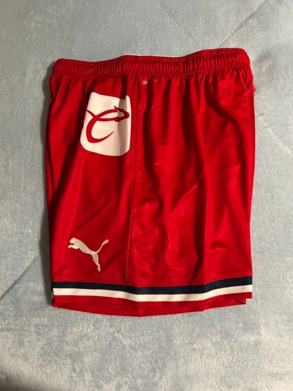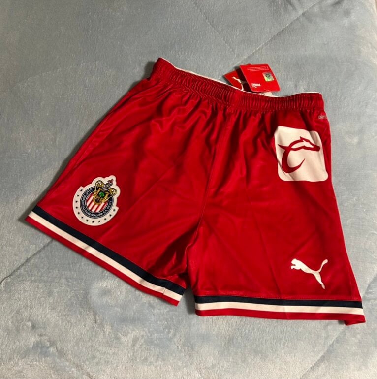 Short deportivo, marca puma, equipo chivas, nuevo, talla S, para niño, color rojo con blanco, con etiqueta