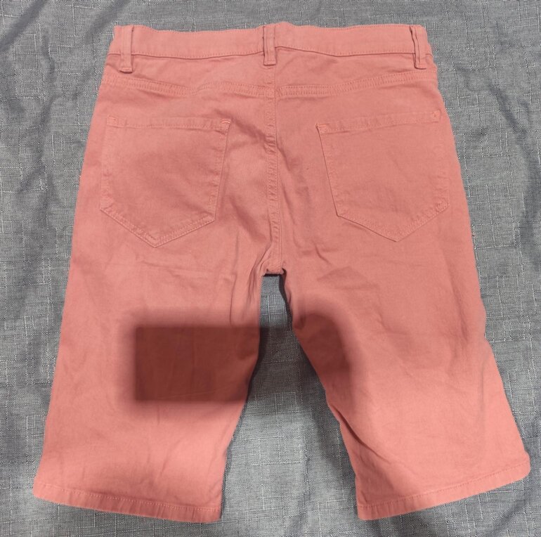 97% algodón. Mide 37 cm de la cintura y 52 cm de largo, no tiene detalles la tela es muy suave