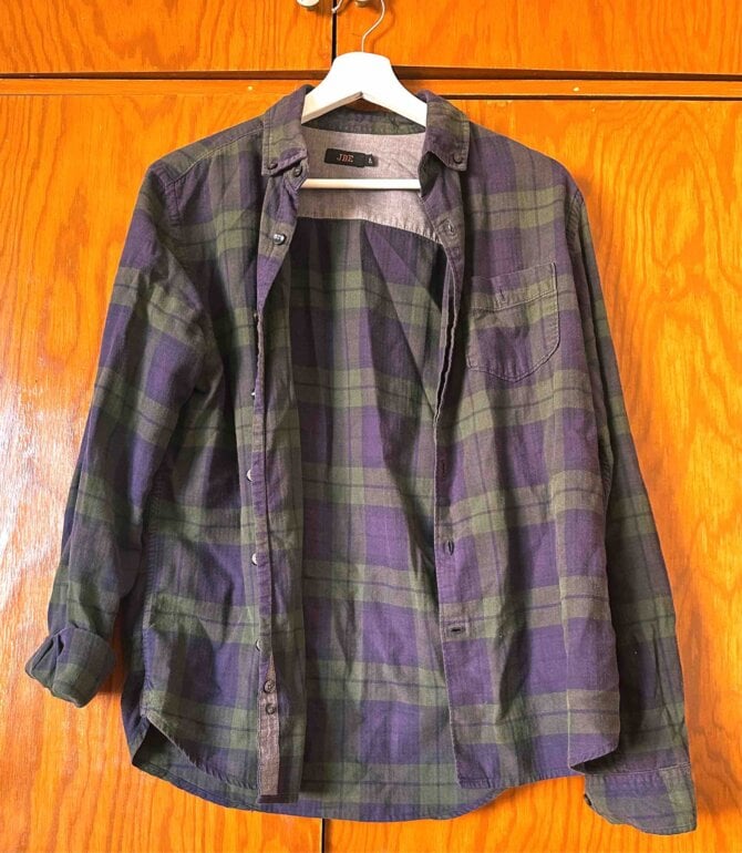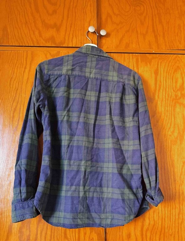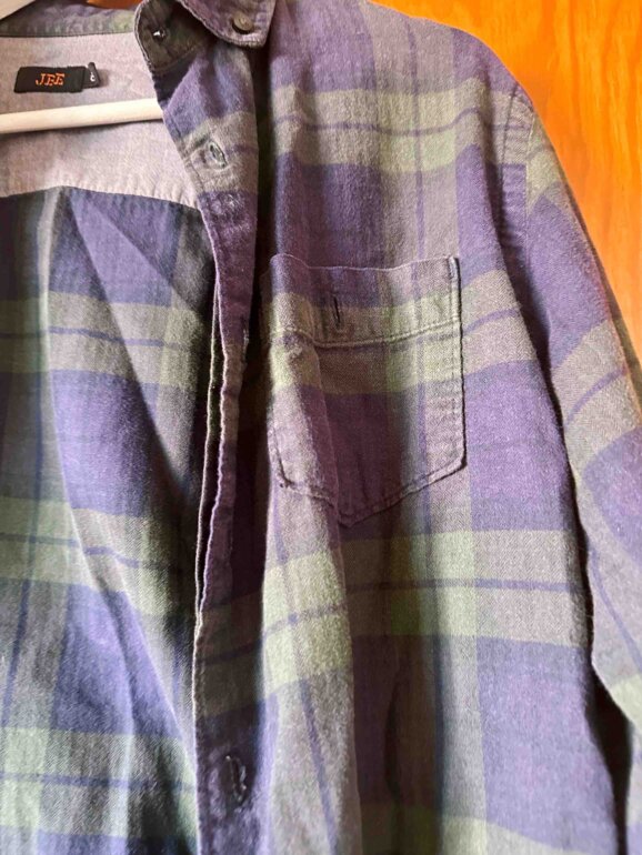 Sobrecamisa de cuadros JBE color verde con azul de manga larga talla CH de ancho mide 43cm