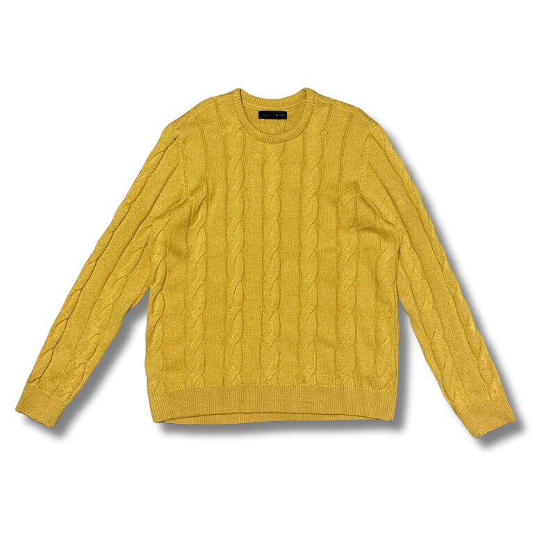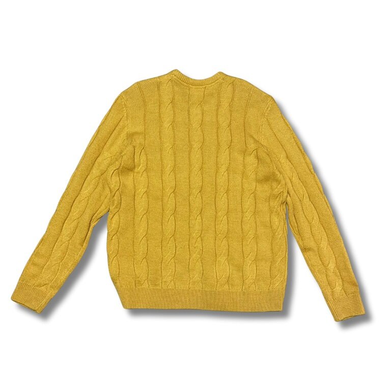 Suéter tejido manga larga y cuello redondo. Diseño de trenza tejida en delantero.