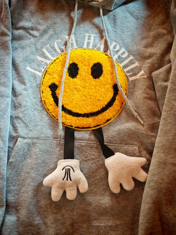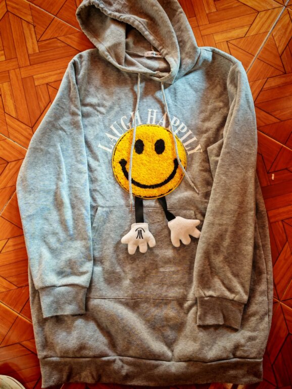 Divertida sudadera happy face para llevar con bikers, leggins. Da un toque relajado a tu look