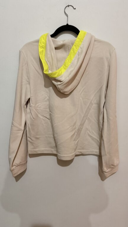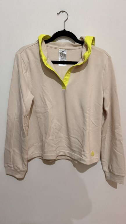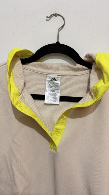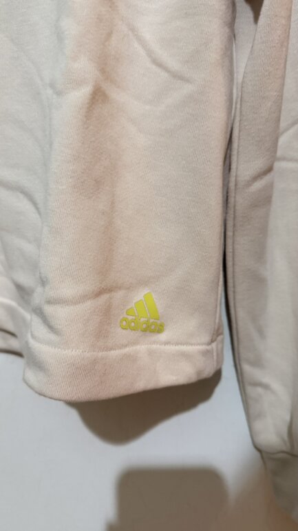 Sudadera Adidas en color beige con detalle amarillo.