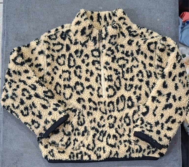 Sudadera super calientita con cierre y bolsitas al frente. Estampado animal print. Solo esta marcado por dentro el nombre de mi niña,pero ko afecta en nada su uso.