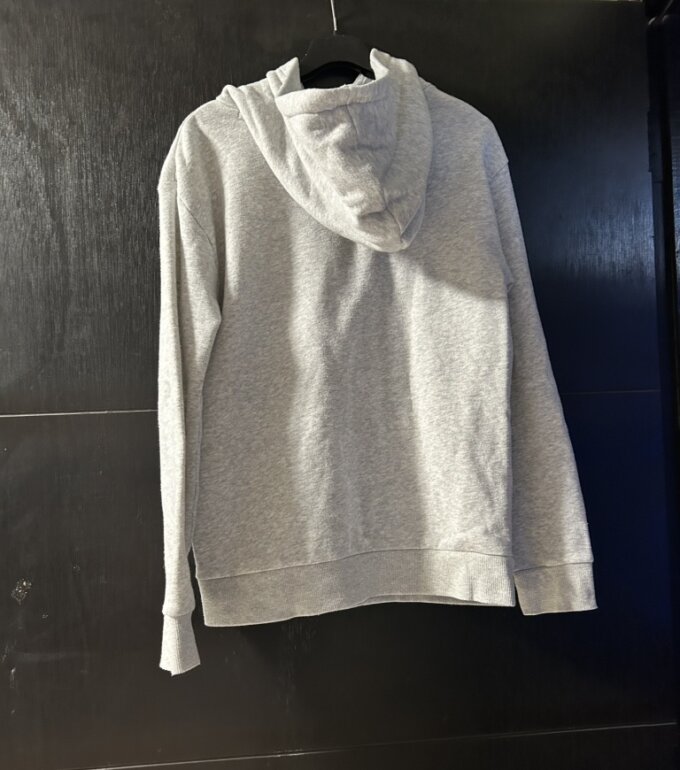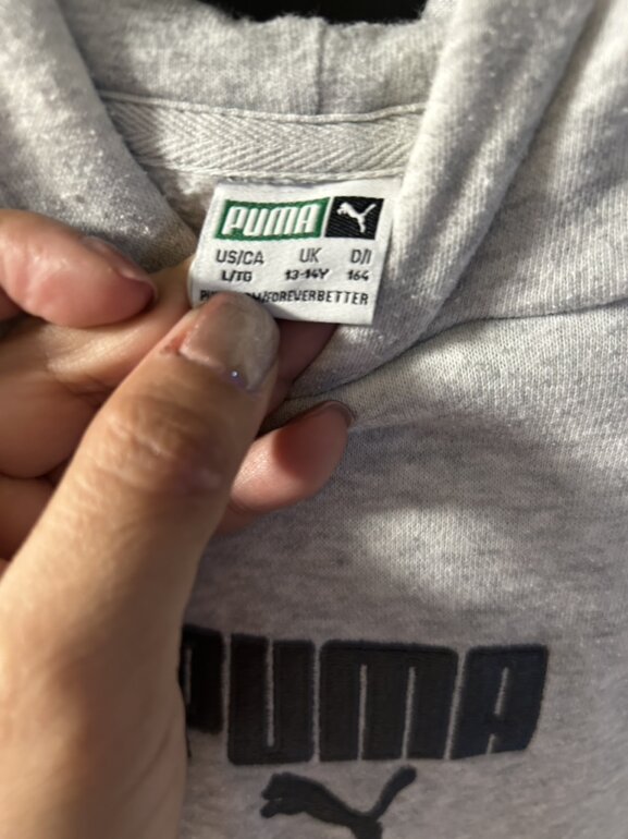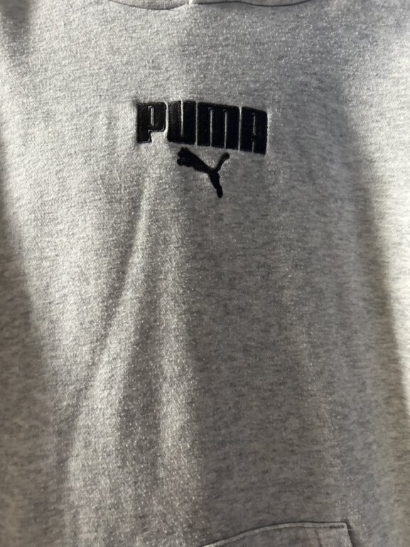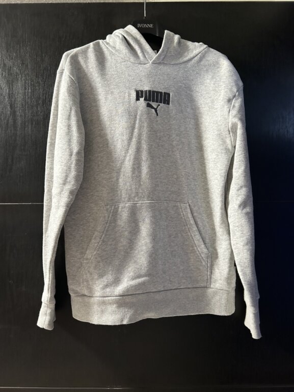 Sudadera marca puma, talla 13/14, con capucha, bolsa enfrente, color gris claro